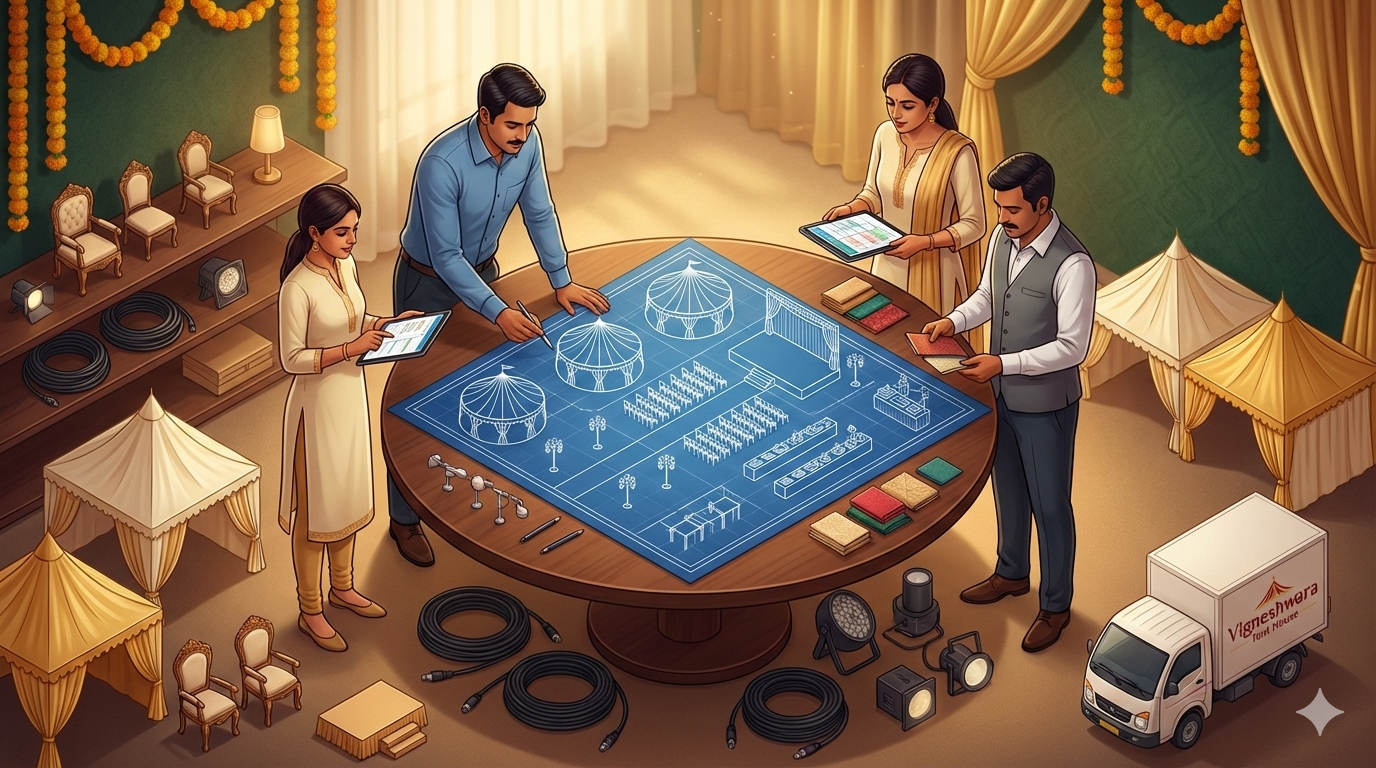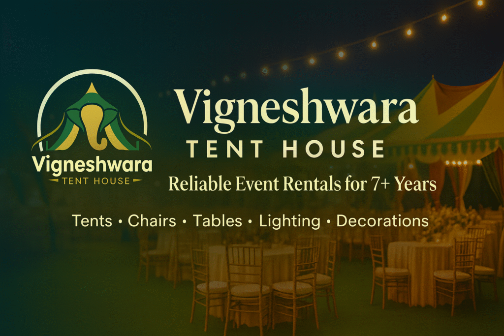 If you are in Vijayawada, Vigneshwara Tent House is a trusted option with 35+ years of experience and reliable event setups.